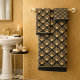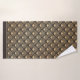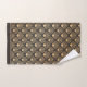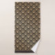 Art deco gold fan pattern bath towel set featuring a repeating geometric fan motif inspired by classic 1920s design. The warm gold pattern sits against a rich dark brown background, creating a sophisticated palette that feels both vintage and modern. A subtle gold border detail adds structure and decorative framing, enhancing the timeless art deco aesthetic. This elegant geometric design pairs beautifully with brass fixtures, marble surfaces, and warm neutral interiors, bringing bold pattern and refined glamour to the bathroom.