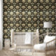Elevate your boring powder room with this classy Art Deco Gold and Black Moody Floral Geometric Wallpaper pattern. Featuring rich dark tones, elegant gold accents, and vintage-inspired Deco patterns, this design adds a luxurious, dramatic touch to any small space. Perfect for statement walls, modern glam interiors, and timeless home décor styles.
