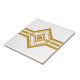 Stilvolle Deko-Stil goldene geometrische Detail Zierleisten dekorative Keramik Kachel auf einem weißen Hintergrund. Bitte beachten Sie, dass Gold ein senfgelber Flachdruck ist und keine Goldfarbe ist. Das Vintage Interieur des Dekos ist stilvoll und originell.