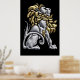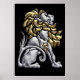 Eine majestätische Art-Déco-Löwe, die im Profil sitzt und in Metallic-Gold- und Silbertönen dargestellt wird, wodurch das Kunstwerk wie eine 3-D-Metallwandskulptur aussieht, die in architektonischen Ornamenten verwendet wird