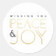 Diese Urlaubsaufkleber zeichnen sich durch den Gruß Peace & Joy aus. Die Imitate sind goldfarben und schwarz und stimmen mit der Art Deco Holiday Trees Collection überein.