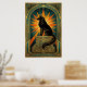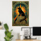 Art Deco Howling Wolf Golden Sunburst Poster