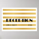 Der Hintergrund ist in Gold und Weiß gestreift und mit EMPFANG im Art-Déco-Schriftart versehen. Passen Sie sich mit dem Namen und dem Datum des Paares an.