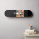 Dieses schicke Art Deco inspirierte Skateboard zeigt ein Bild einer eleganten Dame. Die Farbtöne Blau, Orange, lila und Gelb sind in geometrischen Farbtönen gehalten und verleihen dem Ganzen eine lebendige Note. Personalisieren Sie das Skateboard mit Ihren Initialen unter dem Bild. Ein ideales Geschenk für den Liebhaber von Retro-Stil und Skateboarding.