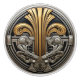 Herrlicher Jugendstil-Keramik-Knopf mit goldfarbenem und silberfarbenem griechischem Design. Dieser wunderschöne Keramik-Knopf hat einen metallischen, griechischen Look auf schwarzem Hintergrund. Aktualisieren Sie Ihre Kleiderschrank, Küche und Badewanne, DRUCKTE BILD KEINE TATSÄCHLICHE MUTTER VON PEARL, GLAS, GEMA ODER GOLD METAL