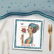 Diese Grafik ist handbemalt und von der Art-Déco-Ära inspiriert, dem Kunststil der 1920er-1930er Jahre. Es zeigt eine Frau aus den 20er Jahren mit einem blau lackierten Kleid und einem blauen Hut mit Federn. Karo der Sammlung für die Koordination von Objekten wie Party Teller Hüte und mehr.