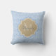 Art Deco Light Blue Fish Scales Tan Monogram Name Kissen