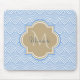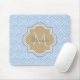 Ein stilvolles, hellblaues Deko-Fisch-Muster-Mousepad mit einem tan quatrefoil Abzeichen können Sie durch einfaches Hinzufügen von Monogramm und Namen personalisieren. Das ist Teil der Little Boy Blue Fishcale Warm Sand Monogram Spring Kollektion.
