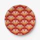 Papier Party Teller in einer Reproduktion einer stilisierten Art-Déco-Lilie, Tapeten-Muster - ein Farbverlauf von tiefFlammenorange zu Weiß, mit Senfgold, auf einem orangen Hintergrund in der Mandarine