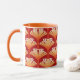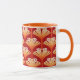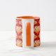 Tasse in einer Reproduktion einer stilisierten Art-Déco-Lilie, Tapete-Muster - ein Farbverlauf von tiefFlammenorange zu Weiß, mit Senfgold angereichert, auf einem Hintergrund in Orange, Mandarine