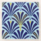 Digitale Reproduktion eines klassischen Art-Deco-Tapeten, Untersetzer aus Ventilatormuster - kobaltblau auf hellblauem Himmel, vergoldet