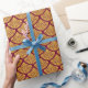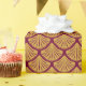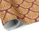 Ein Muster der Meerjungfrau skaliert in einer dunklen magentafarbenen Farbe, mit einem goldenen Hintergrund. Die Waagen sind im Art Deko Stil.