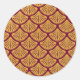 Ein Muster der Meerjungfrau skaliert in einer dunklen magentafarbenen Farbe, mit einem goldenen Hintergrund. Die Waagen sind im Art Deko Stil.