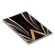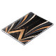 This abstract Art Deco design exudes luxury and sophistication with its sweeping metallic arcs in gold, copper, and grey against a deep black background. Symmetrical curves converge towards a central focal point, framed by sharp angular lines and vertical patterns, evoking glamour and retro elegance. Perfect for elevating home decor, office art, and stylish accessories with a timeless, opulent aesthetic.