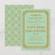 Diese Einladungen zum Probe-Dinner sind mit einer Minze- und glitzernden Goldpalette, einem geometrischen Rahmen und anderen stilistischen Details inspiriert, die alle durch Art Deco und die rauschenden Zwanziger Jahre. Sie können die Textfelder des Beispiels nach Ihren Wünschen anpassen.