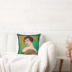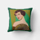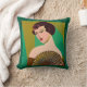 Das Kissen in einem modernen, halb abstrakten Art-Déco-Portrait einer Dame, die einen Fan hält, inspirierte vor einem Hintergrund in Jade, Grün und Gold