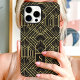 Stillose Eleganz in diesem Art Deco Monogram Gehäuse. Dieses raffinierte Design zeichnet sich durch komplizierte geometrische Muster aus, die von den rauschenden Zwanzigern inspiriert wurden, und schafft einen klassischen und modernen Look. Personalisieren Sie es mit Ihrem Monogramm für eine Touch von einzigartigem Stil und zeitloser Eleganz. Ideal für diejenigen, die Vintage Ästhetik, fette Grafik und eine Touch personalisierten Flairs schätzen.