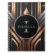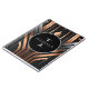 A luxurious Art Deco design featuring a bold central circle with a customizable monogram letter intersected by a personalized name. Polished copper and metallic silver geometric elements create a striking symmetrical composition against a deep matte background. The clean intersection of the letter and name adds a refined personal touch.