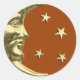 Art Deco Moon and Stars - Rostbraun und Gold Runder Aufkleber