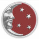 Aufkleber in klassischem Art Deco Moon and Stars Design in gebürstetem Silber mit Emaille-Look, dunkelchinesischer Roter Hintergrund