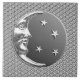 Classic Art Deco Moon und Sterne Design in gebürstetem Silber auf Emaille hämatrisch grau / grau, mit einem silbermetalischen Deko Hintergrund
