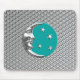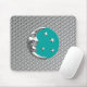 Mousepad in einem klassischen Art-Déco-Mond und Sternendesign in gebürstetem Silber und Emaille türkis / Pfau, auf einem Imitat metallisch silber Hintergrund
