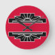 Klassisches Art Déco Sonnenmotiv in Schwarz/Weiß mit rotem Hintergrund.