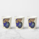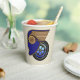 Classic Car und Art Deco Fans Alarm! Das elegante, raffinierte Bild dieses coolen Papiertassen ist ein auffälliges Abbild eines Posters aus der Kundgebung der 1930er Jahre mit einem Trompe l'oeill-Gesicht, das von vorn Ende der 1930er Jahre geschaffen wurde, ergänzt durch Leslie Sigal Javorek, der ebenfalls einen extravaganten Reifen im Hintergrund hinzufügte.