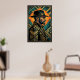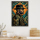 Add an air of mystery and classic cinematic style to your walls with this Art Deco noir detective portrait. Featuring a sharp, geometric profile of a man in a fedora and trench coat, set against a radiant golden sunburst and deep teal geometric frame. This piece captures the suspenseful glamour of 1920s crime dramas, making it ideal for a modern office, study, or sophisticated lounge.