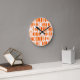 Diese Uhr hat einen Deko-Design aus Ovalen und Halb-Ovalen in Weiß und Orangetönen.