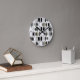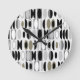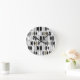 Diese Uhr hat einen Deko-Design aus Ovalen und halben Ovalen in Schwarz, Weiß und Grautönen.