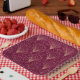 Art Deco pattern with gold geometric fan motifs on a maroon background, creating an elegant, symmetrical design with vintage sophistication.