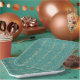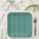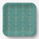 Art Deco pattern with gold geometric shapes on a teal background, featuring symmetrical fan and chevron designs. Elegant, classic, and retro style.