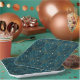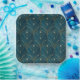 Art Deco pattern with gold geometric shapes on a deep teal background, featuring arch motifs and dotted accents, creating an elegant vintage feel.