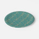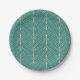 Art Deco pattern with gold geometric shapes on a teal background, featuring symmetrical fan and chevron designs. Elegant, classic, and retro style.
