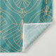 Art Deco pattern with gold geometric shapes on a teal background, featuring symmetrical fan and chevron designs. Elegant, classic, and retro style.