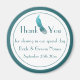 Ein maßgeschneiderter Hochzeitsfavorit "Danke" Magnet in aquamarinen und orakelfarbenen Grüntönen und Weiß mit einem Stilpfau oder Pfau-Emblem der Art Deco-Ära. Ein sehr einfaches, aber kühnes und raffiniertes Design. Teil eines integrierten Bereiches von Truly_Uniquely.