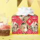 Schenken Sie Ihr Weihnachtsgeschenk im Art-Déco-Stil mit diesem Foto Geschenkpackung! Ein nahtloses geometrisches Muster, mit Diamantformen, Sternen und stilvoller Typografie. Personalisieren Sie die Vorlage mit drei bevorzugten Fotos, dem Namen des Empfängers und dem Geburtstagsalter. Eine luxuriöse und einzigartige Art, die festliche Saison für Familie und Freunde zu feiern! Druckfarben: rot, weiß und gold. Erhältlich mit einer Auswahl an Matten oder glänzenden Oberflächen.