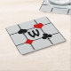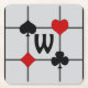 Diese personalisierten Untersetzer verfügen über ein Art-Déco-inspiriertes Originaldesign mit einem Kartenspiel-Motiv, das aus Anzug-Symbolen (Diamant, Klub, Herz & Pik) besteht, die sich in der Mitte auf schwarz-dicke, dünne horizontale und vertikale Linien eines Rasters treffen, mit einem großen benutzerdefinierten Textfeld für Ihr Monogramm in der Mitte.