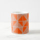 Diese Tasse hat eine Art Deko-Design von Quadraten in der Hälfte durch diagonale Linien von Silber geteilt. Die Quadrate werden dann auf einem orangefarbenen Feld zusammengefügt.