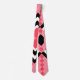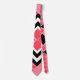 This tie has an art deco quilt-inspirred design of diamond shapes in black, white and pink on field of watermelon.