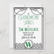 Eine elegante Art Deko-Einladung für Ihr Pferderennuhr-Party für ein Derby- oder Pferderennen. Zwei Pferde oben auf dem Kartenrahmen. Gatsby vibes mit Vintager Typografie. Ihr Monogramm mit Zickzack Wellen ist Teil des eleganten Designs. Die Roaring 20 bei den Rennen. Eine klassische und spektakuläre Einladung zu Ihrem wunderbaren glamourösen Event. Weißer Hintergrund mit schwarz-grünen Akzenten. Alle Texte können individuell angepasst werden.