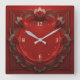 Art Deco Red Quadratische Wanduhr
