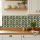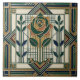 Step back in time with this exquisite ceramic tile, inspired by the bold geometric aesthetics of the Art Deco movement. A central stylized rose, rendered in a striking emerald green and accented with warm bronze hues, is framed by a symphony of angular lines and symmetrical patterns. The sophisticated color palette, featuring deep blues, rich greens, and touches of maroon, is beautifully complemented by shimmering gold detailing, evoking the glamour of the 1920s. This tile is an ideal choice for creating a focal point in your home, whether it's for a stylish kitchen, a chic bathroom, or an eye-catching feature wall, bringing a sense of timeless glamour and artistic flair to your decor.
