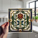 Step back in time with this stunning Art Deco-inspired ceramic tile, featuring a stylized red rose at its heart. The intricate design boasts a rich palette of deep blues, lush greens, and gleaming gold accents against a crisp white background, creating a captivating visual. This exquisite tile captures the essence of the Art Deco movement, characterized by its geometric patterns and floral motifs, making it a perfect statement piece for any space. Elevate your home decor with this elegant and timeless work of art, adding a touch of vintage sophistication and charm to your walls or backsplash. Its detailed craftsmanship and vibrant colors are sure to impress and become a conversation starter.