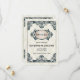 Die 1920er Jahre scheinen immer ein Comeback in der Populärkultur zu machen, und eine Hochzeit zum Thema der 20er Jahre ist sicherlich eine, die man sich erinnern sollte. Dieser Art Deko beeinflusst Save the Date Hochzeitsankündigung nimmt die dekorative Kunst in den zwanziger Jahren beliebt, um Ihre individuellen Save the Date Informationen zu gestalten. Ein verzierter Deko-Rahmen in Schwarz überdruckt einen cremefarbenen Hintergrund mit einem subtilen, dekorativen Rautenmuster, um den Text zum Fokus zu machen. Die Save the Date Nachricht sticht in einem ovalen Zierrahmen auf der Vorderseite hervor, der die Namen des Paares auf der Rückseite enthält. Verfügbar mit passenden Produkten.com.
