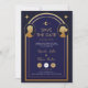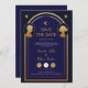 Mit diesem Art Déco Save the Date Einladung verkünden Sie Ihren besonderen Tag mit zeitloser Eleganz. Mit Vintag inspirierten Silhouetten, einer luxuriösen Marine und Goldpalette und einer raffinierten Typografie vereint dieses Design den Glanz vergangener Zeiten - ideal für stilvolle Hochzeitsfeiern. Ideal für: Elegante Hochzeit speichern Sie die Daten Gatsby oder Art Déco themed Hochzeiten Vintag inspirierte Hochzeitssaison Formal Hochzeit Einladungen