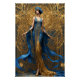 Eine Frau im Flapper-Stil ist in einem Zickzack aus der 20er Jahre gekleidet, in diesem schönen, blauen und goldenen Art Déco-Bild.