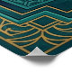 Erfassen Sie die fließende Eleganz einer Kabarett-Performance der 1920er Jahre mit dieser atemberaubenden Art Deco-Silhouette. Eine grazile Tänzerin im Seitenprofil hält einen Fächer, vor einem strahlenden goldenen Sonnenstrahl und einer tief türkis getönten geometrischen Architektur. Die Komposition ist von aufwendigen Mustern gerahmt und macht dieses Bild zu einem perfekten Hingucker für ein Ankleidezimmer, Schlafzimmer oder eine elegante Lounge.