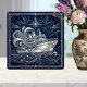 Embark on a journey with this stunning Art Deco-inspired ceramic tile, featuring a magnificent silver steamboat gliding through stylized ocean waves under a starry night sky. The intricate linework and luxurious silver accents evoke the glamour of the Roaring Twenties, perfect for adding a touch of vintage elegance to any space. This design captures the romance of sea travel and the magic of a clear night at sea, making it an exquisite addition to your home decor or a memorable gift for any nautical enthusiast.